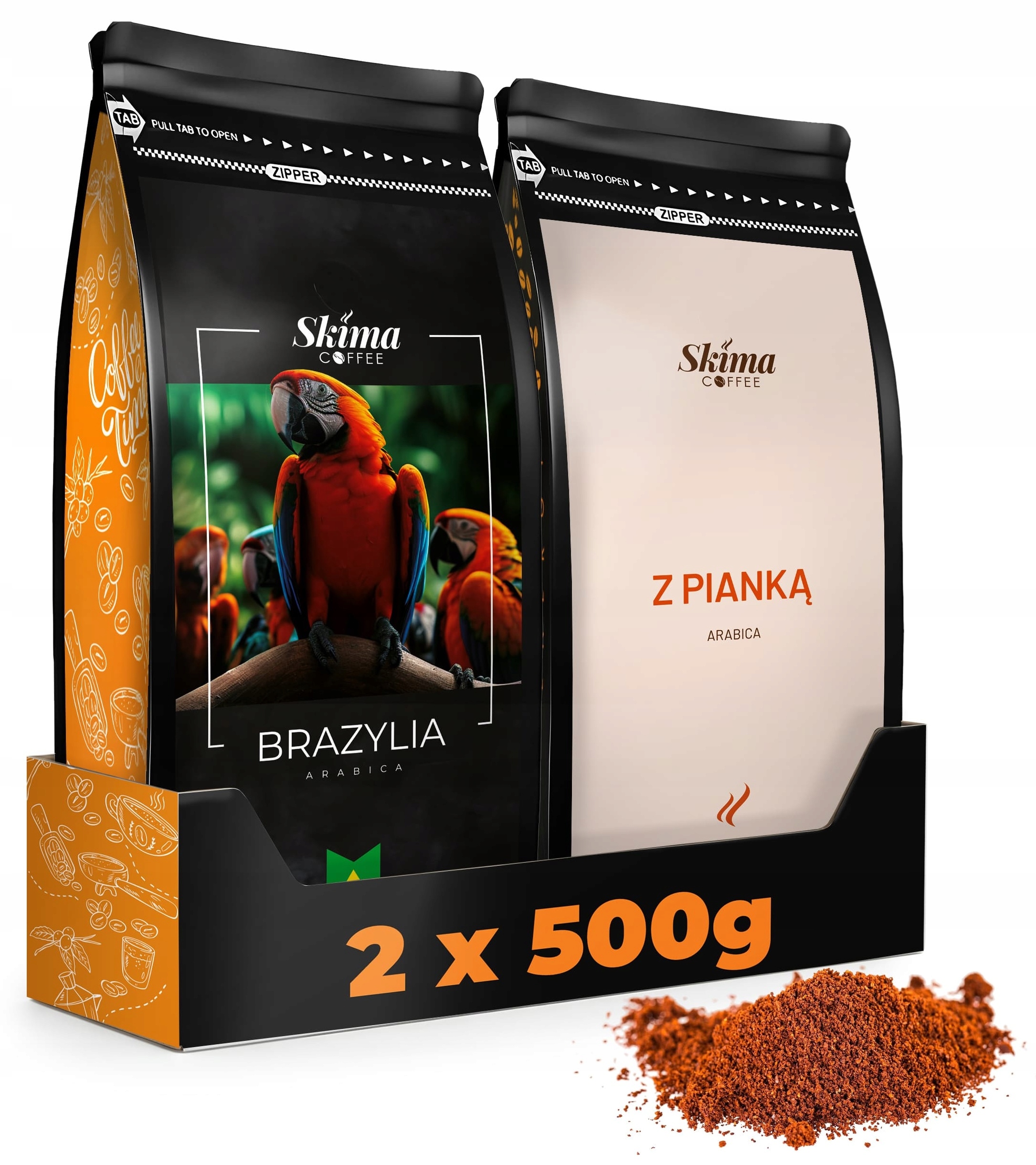 skimacoffee / Kawa Mielona 500g x2 BRAZYLIA/ Z PIANKĄ 100% ARABICA Świeża 1kg + GRATIS